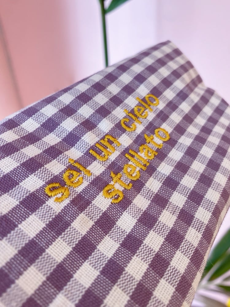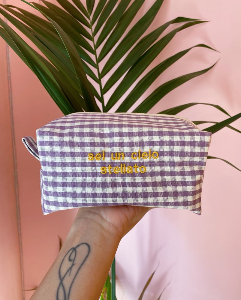 Pratico, unico e originale: questo beauty case è realizzato interamente a mano e impreziosito da un ricamo artigianale.