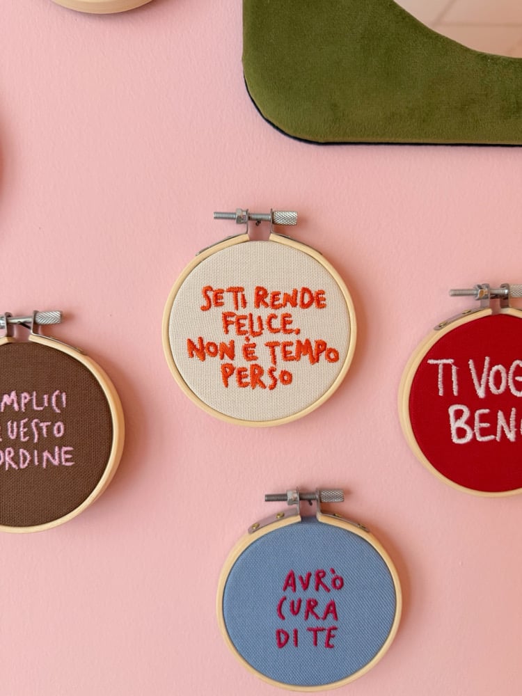 E la parete diventa una collezione di pensieri cuciti.